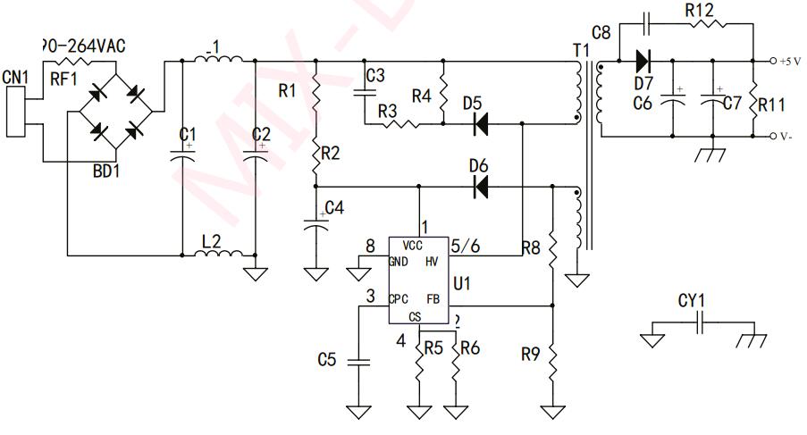 5V2A power supply solution, MD1812SCG-TR six-level energy-efficient switching power supply solution |