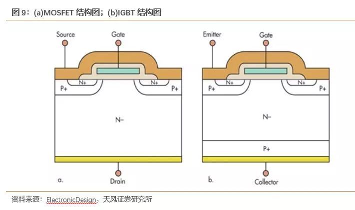 In terms of structure, the IGBT has one more P+ region than the MOSFET, and the on-resistance of the device can be reduced by the injection of holes in the P layer. As the voltage increases, the on-resistance of the MOSFET also increases, so its conduction loss is relatively large, especially in high voltage applications. In comparison, the on-resistance of the IGBT is small.