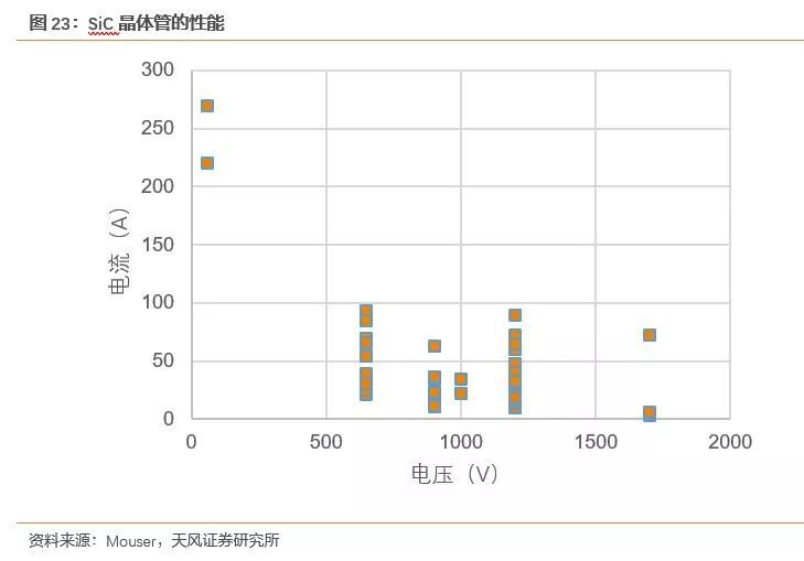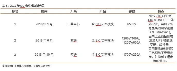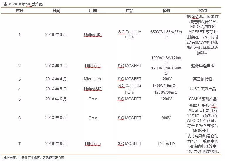 Commercially available SiC MOSFETs have a maximum operating voltage of 1700V, an operating temperature of 100-160 ° C, and a current of less than 65 A. The main products of SiC MOSFETs are 650V, 900V, 1200V and 1700V. Among the new SiC products introduced by major international manufacturers in 2018, Cree’s new E-series SiC MOSFETs are the only SiC MOSFETs in the industry that have passed the automotive AEC-Q101 certification and meet the PPAP requirements.