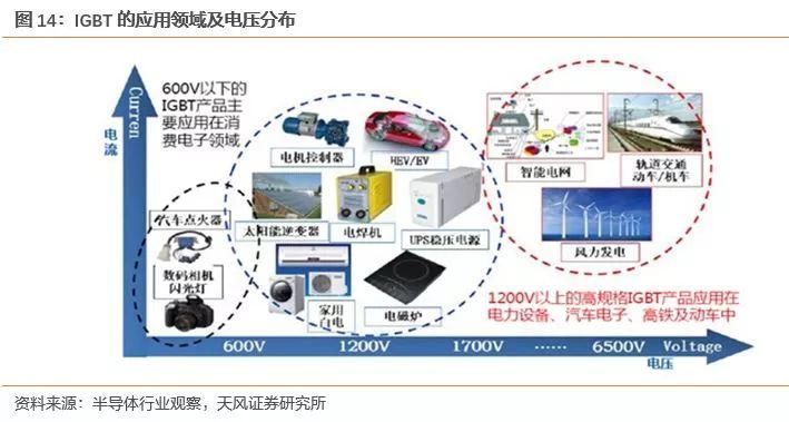 According to the voltage distribution, the IGBT products used in the consumer electronics field are mainly below 600V, such as digital camera flash. IGBTs above 1200V are mostly used in power equipment, automotive electronics, high-speed rail and motor trains. The IGBT modules commonly used in EMUs are 3300V and 6500V. The IGBT used in the smart grid is usually 3300V.