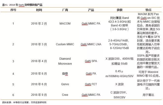 Commercial GaN power amplifiers currently operate at a maximum operating frequency of 31 GHz. In 2018, MACOM, Cree and other companies have successively launched GaN MMIC PA modular power products for base station, radar and other application markets.