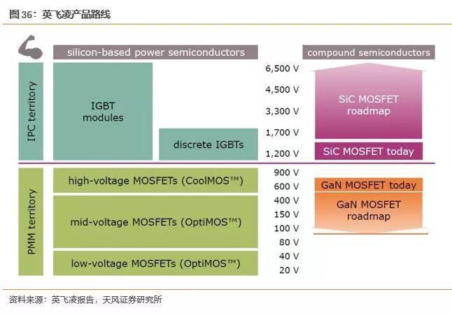IPC (Industrial Power Control) and PMM (Power management & Multimarket) are the core business units of Infineon. Among them, IPC’s main products are discrete and modular IGBTs. The discrete IGBT’s voltage operating range is 1200-1700V, and the module IGBT mainly works at 1200-6500V. PMM’s main products are: High Voltage MOSFET product series CoolMOSTM and medium and low voltage product series OptiMOSTM.