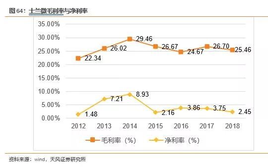 According to the company’s 2018 financial report, the company’s fiscal year 2018 revenue was 2.345 billion yuan, an increase of 12.81%, net profit of 220 million yuan, an increase of 40.92%. The average net profit margin of the company in 15-18 years was 8.06%, and the average ROE was 4.09%.