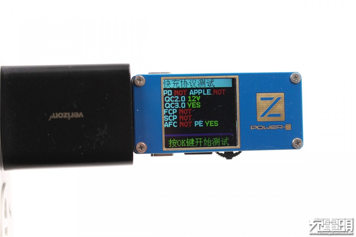 Use ChargerLAB POWER-Z FL001SUPER to detect the fast charge protocol of the charger output interface, and display three fast charge supports QC2.0, QC3.0 and MTK PE.